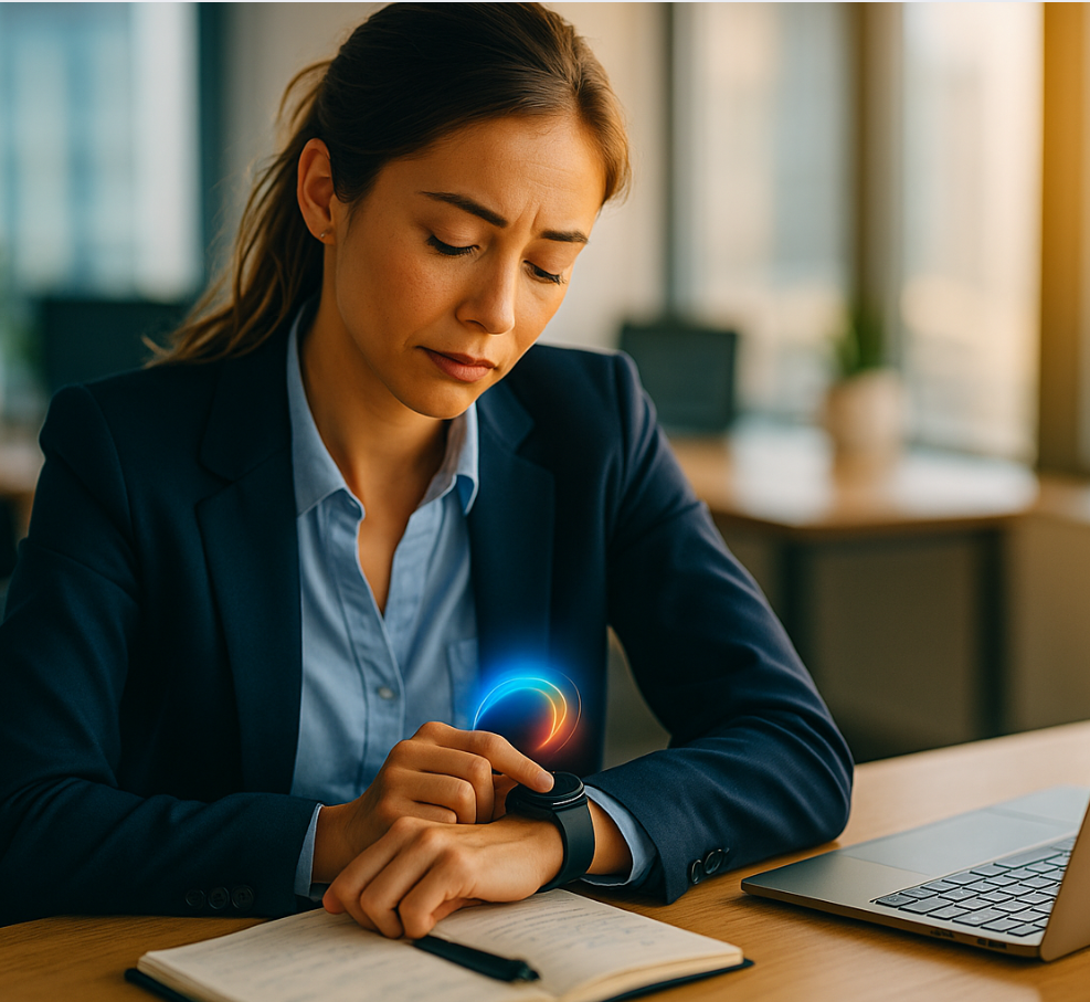 Grâce à ses capteurs et à son intelligence embarquée, l’AÌMA Watch détecte les variations fines de vos signaux corporels : rythme cardiaque, conductivité de la peau, micro-réactions physiologiques. Ces données révèlent votre état de tension énergétique en temps réel. Plutôt que de lutter contre le stress, AÌMA vous aide à le reconnaître, à en saisir les causes et à restaurer la cohérence entre corps et esprit.